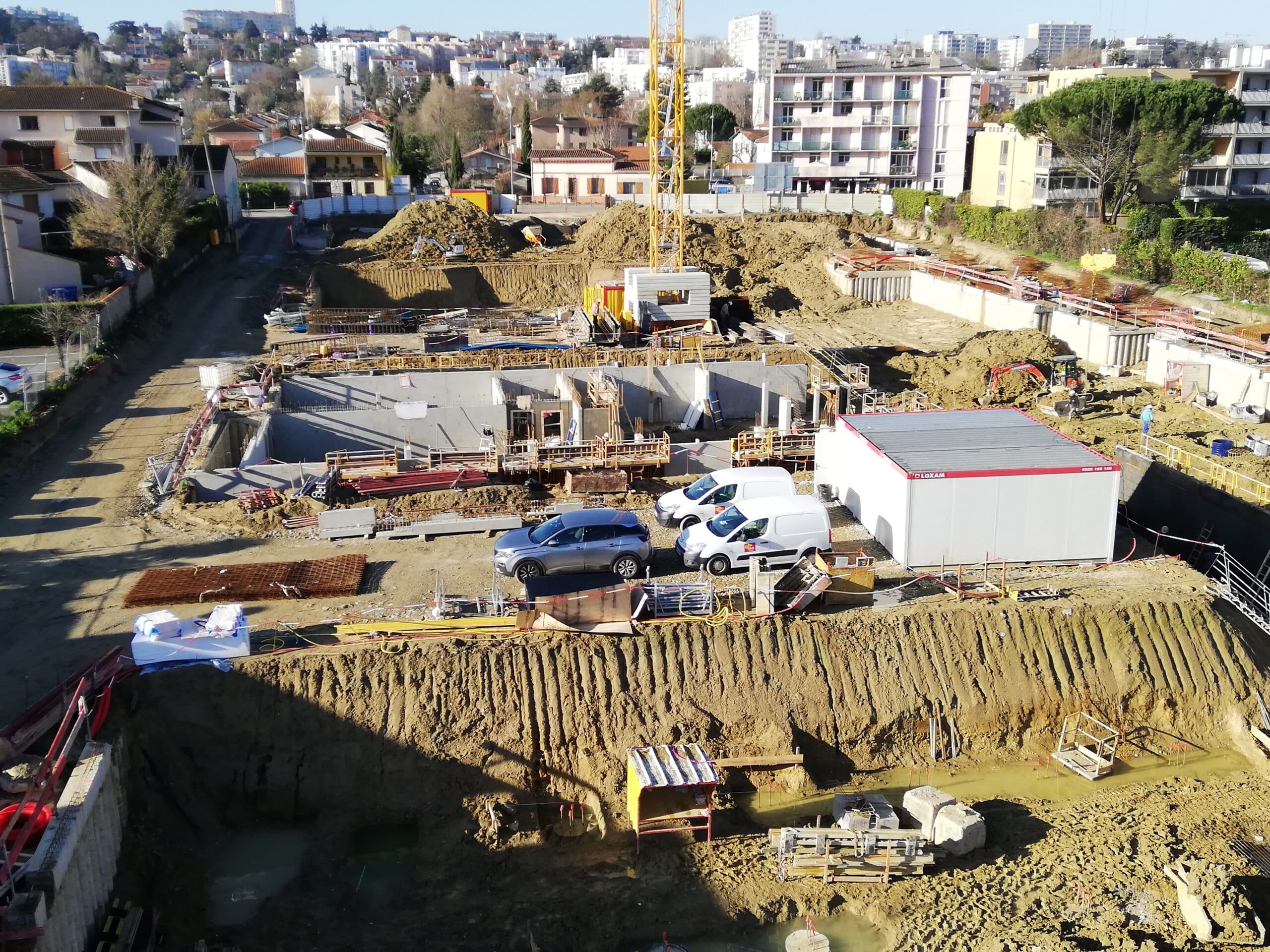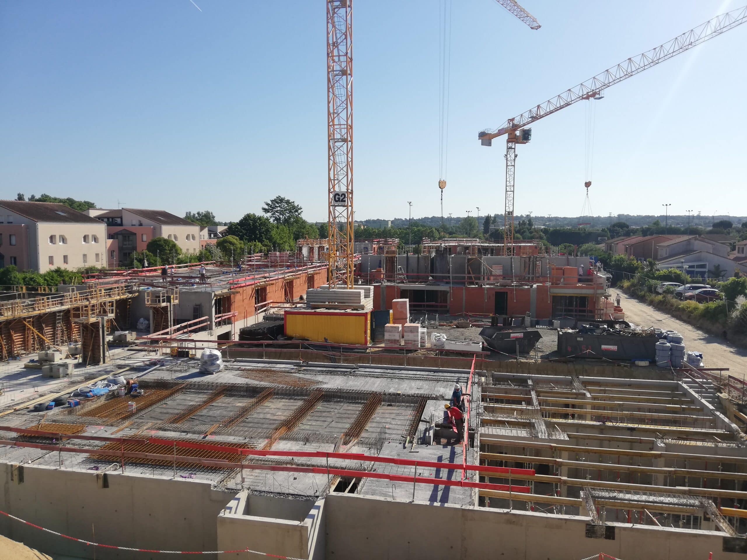 Ensemble de 186 logements collectifs répartis en 8 bâtiments R+2 + combles dont 1 bâtiment SENIOR (Bâtiment H, Les Chalets) et commerces sur 1 niveau de sous-sol commun.