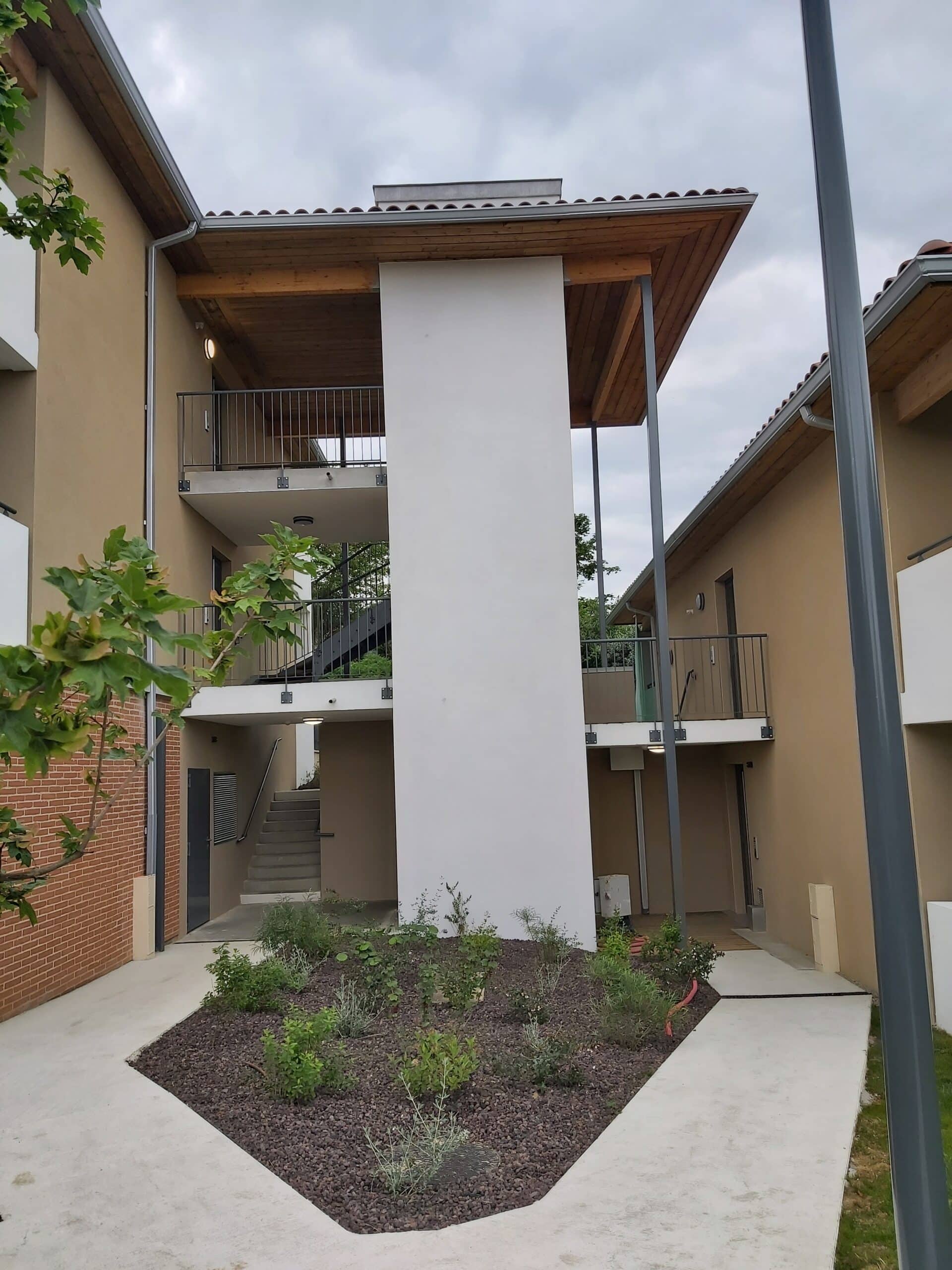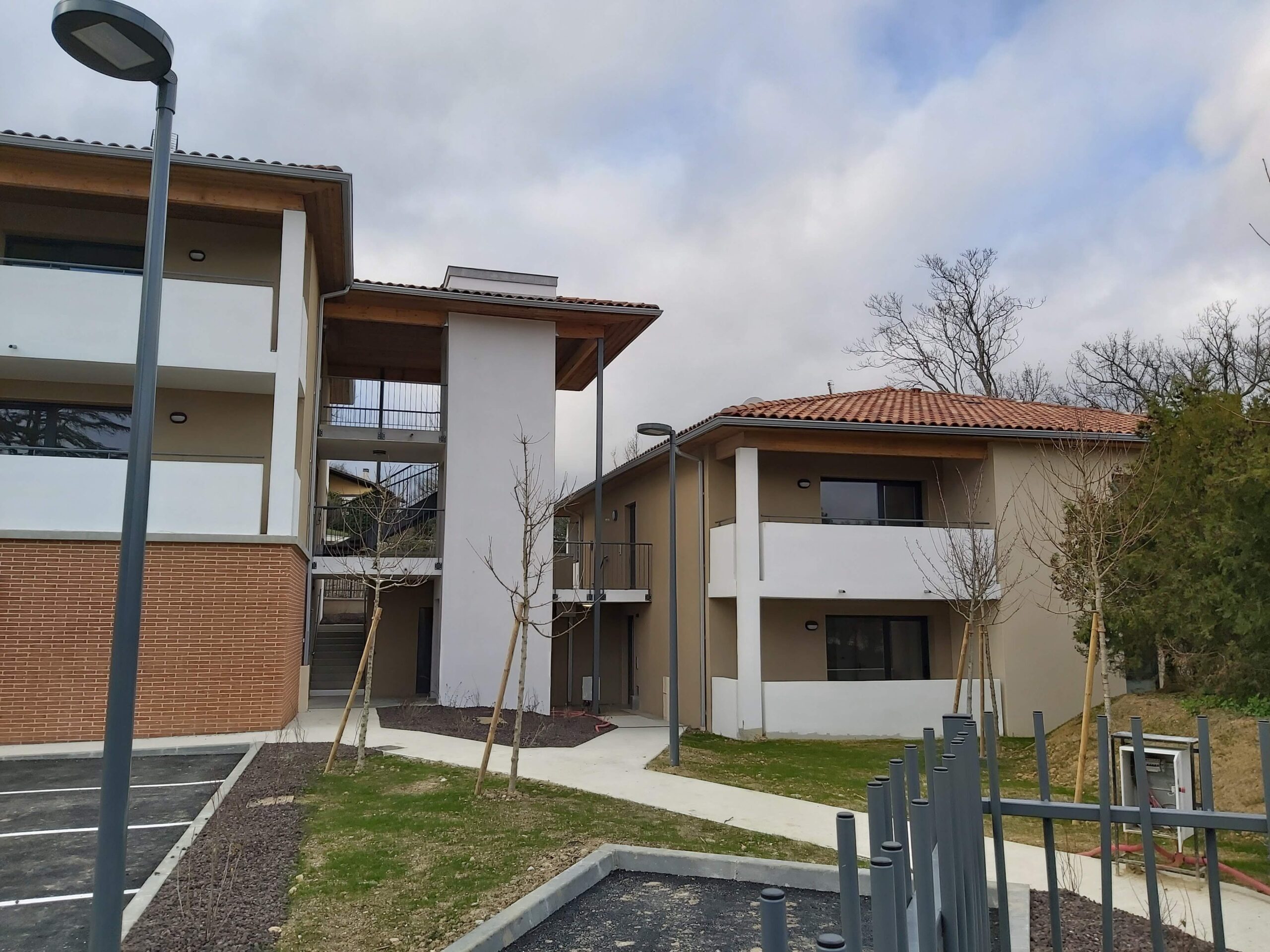 Ensemble de 17 logements collectifs répartis en 2 bâtiments R+1 sans sous sol et R+2 sur 1 niveau de sous-sol semi enterré.